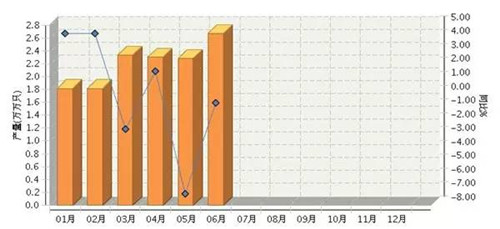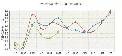 ? 2017年1~6月,廣東燈具及照明裝置行業累計完成產量6.90億套,同比下降9.11%。其中:6月份完成產量1.35億套,同比下降6.8%。