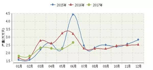 ? 2017年廣東燈具及照明裝置行業連續三年月度產量對比