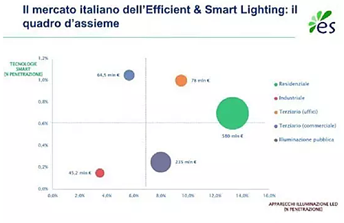 ? 近期,在意大利米蘭理工大學研究人員的一份“高效&智能照明報告”中透露,在2020年前,意大利的LED及智能照明市場有望以兩位數的速度增長。這意味著在2020年,除了價值1.4億歐元的智能照明市場,意大利的LED市場必定會從2015年的9億歐元增長并超過12億歐元。據了解,米蘭理工大學的研究人員聯合貿易協會共同研究在住宅、工業、公共照明的LED傳播及智能照明方案。研究表明,盡管LED技術的未來發展極具潛力,但當前的LED技術的滲透力仍較低。報告還指出,在2020年前,LED及智能控制系統將從原來的8%增長至42%。