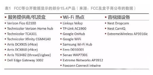 ? 首先來看不同廠商的盒子。從過去6個(gè)月(2016年12月到2017年5月)美國(guó)聯(lián)邦通信委員會(huì)(FCC)對(duì)接入設(shè)備進(jìn)行公告的信息,以及盒子廠商注冊(cè)時(shí)的產(chǎn)品信息可列出表1。