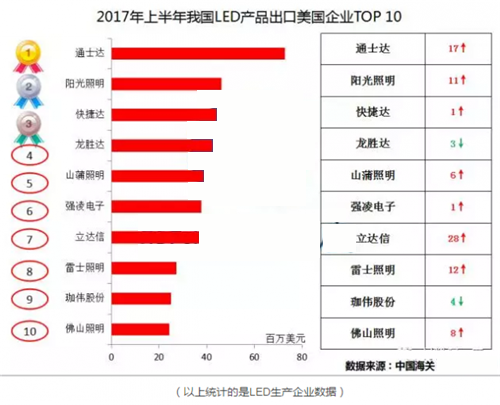 ? LED照明產品中近16億出口美國
