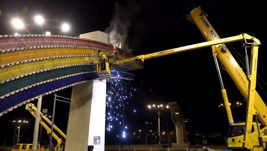 按照施工方案,彩虹門拆除重建工程包括拆除現(xiàn)有結(jié)構(gòu)、基礎(chǔ)施工、鋼結(jié)構(gòu)制作安裝和燈具設(shè)施安裝。為大限度縮短工期,新建彩虹門的鋼結(jié)構(gòu)制作與現(xiàn)場基礎(chǔ)施工并行開展。工期方面,11月25日零時(shí)至12月4日,拆除兩座現(xiàn)有彩虹門結(jié)構(gòu);2018年1月16日前完成新建彩虹門鋼結(jié)構(gòu)施工,2018年1月31日前完成裝飾及燈具、機(jī)電等設(shè)施安裝。