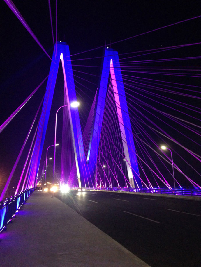 隨著橋梁光亮化過程的進行, 橋梁建成后, 新燈具的施工, 其增亮工程主要是突出橋梁的形狀, 美化城市夜景。