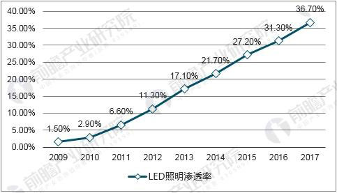 ? 近年來,全球LED市場高速增長,已逐步取代白熾燈、熒光燈等其他照明光源,滲透率持續快速提升,燈港照明據新發布的《LED照明產業市場前瞻與投資戰略規劃分析報告》數據顯示,2017年全球LED滲透率達到36.7%,較2016年上升5.40%。