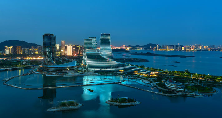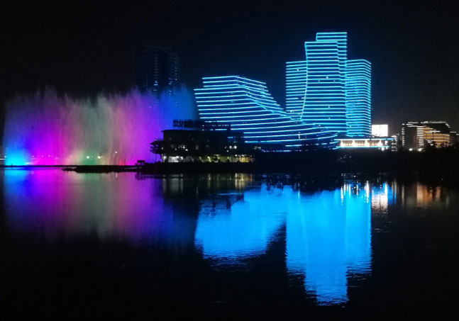 整個(gè)海滄灣沿線夜景工程以廈門中心、泰地海西中心、融信海上城三座大型城市綜合體為主要媒體展示節(jié)點(diǎn),沿岸辦公住宅樓立面動態(tài)燈具相呼應(yīng),表達(dá)“山水相依”的動畫主題,形成7公里長海滄灣沿海景觀帶連綿不絕、氣勢磅礴,山、海、湖、島、城渾然一體的海滄夜景感受。建筑山墻的彩色投光通過海滄大橋動態(tài)聯(lián)動將海滄區(qū)與廈門本島緊密聯(lián)系在一起。